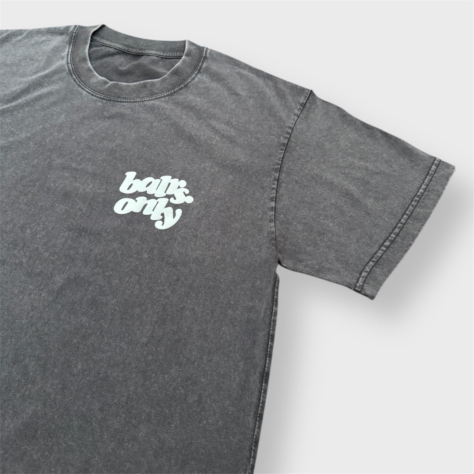 Mineral washed, boxy fit, tight neckline.